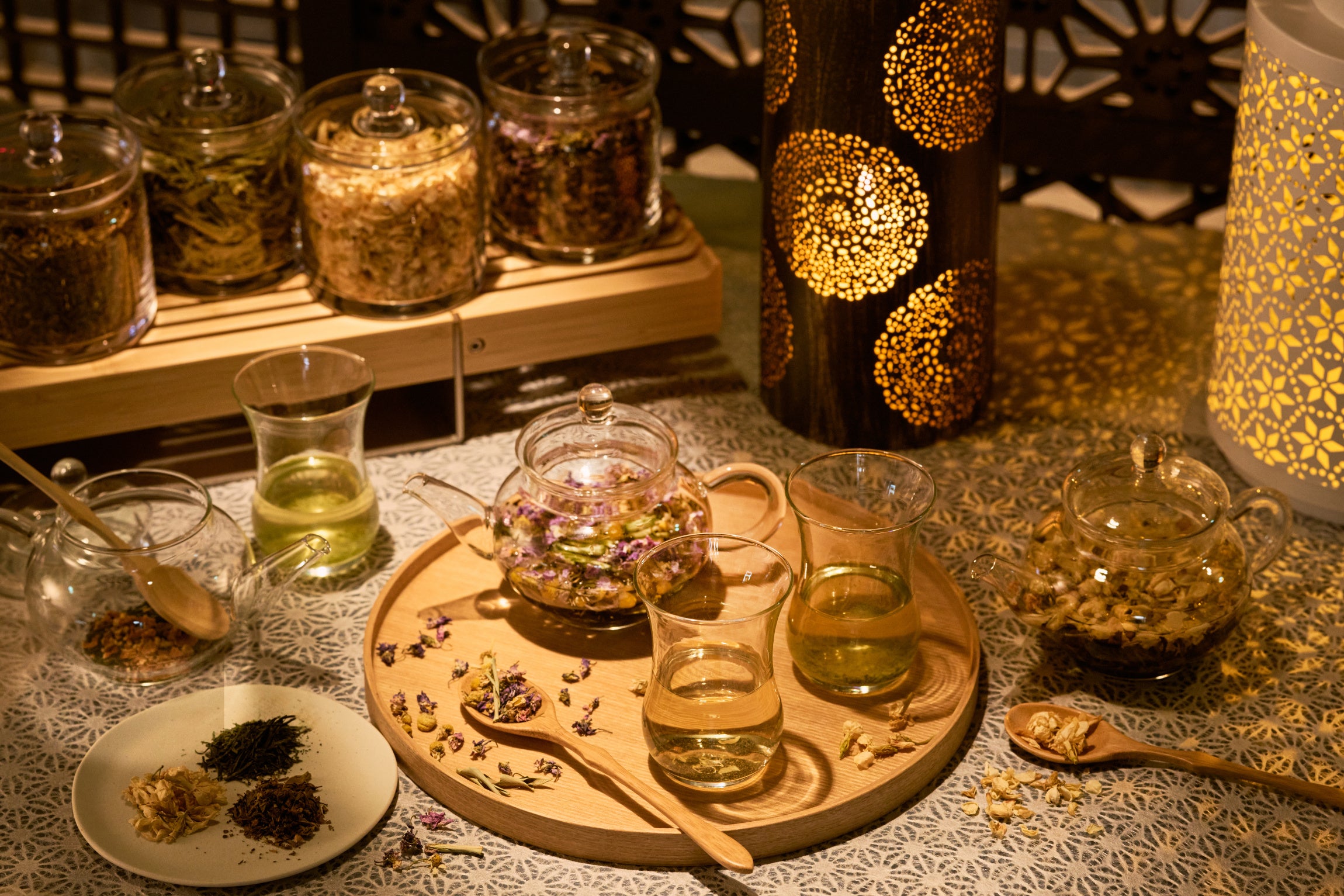 2. 旅の疲れを癒す「煎茶とハーブティのブレンド体験」と「梵字絵馬づくり」