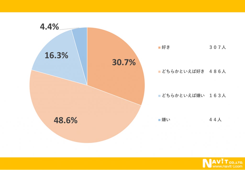 つけ麺は好きですか?というアンケートに対して「好き」と回答された人が30.7%と約1/3という結果になりました。「どちらかというと好き」の48.6%と合わせると、約80%の人がつけ麺が好きだと回答しています。