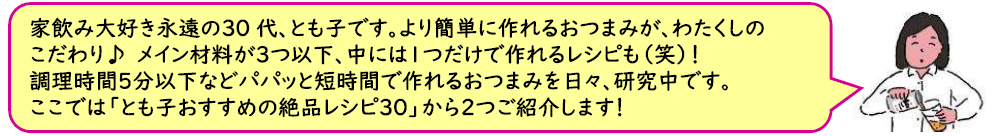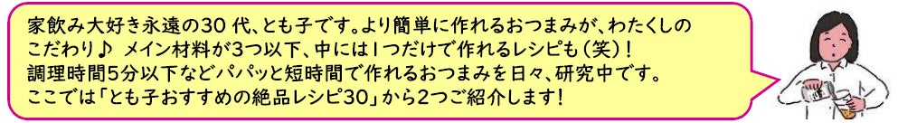 本誌は、アサヒビールのWebサイトで連載中の“家飲み大好き、とも子”が綴るコラム「家のみ酒とも日記」をまとめたレシピ本です。豆腐や野菜、缶詰などの身近な材料を、「切って混ぜるだけ」「のせるだけ」「レンチンするだけ」で、超簡単にできるおつまみを中心に掲載しています。メイン材料1つだけで作れるおつまみから、お店みたいなおしゃれなおつまみまで、お酒を引き立ててくれる151品を紹介! クリスマスや年末年始など、これから増える家飲み時間がさらに盛り上がること間違いなしの簡単おつまみレシピ集です。