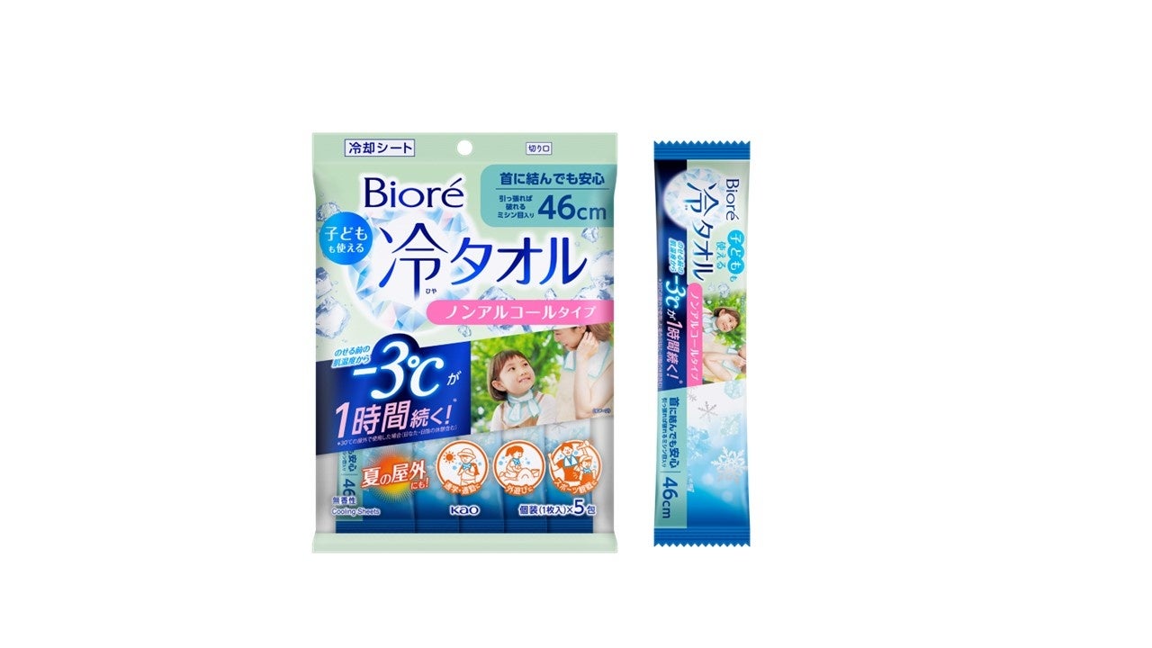 「ビオレ 冷タオル」は、のせる前の肌温度から、肌温度-3℃が1時間続く*2 冷却シートです。首にかけて使える点、個包装で持ち運びに便利な点をご好評いただき、暑い夏を快適に過ごして頂くためのアイテムとして多くのお客さまにご愛用いただき、累計出荷数量1,000万個*1を突破しました。