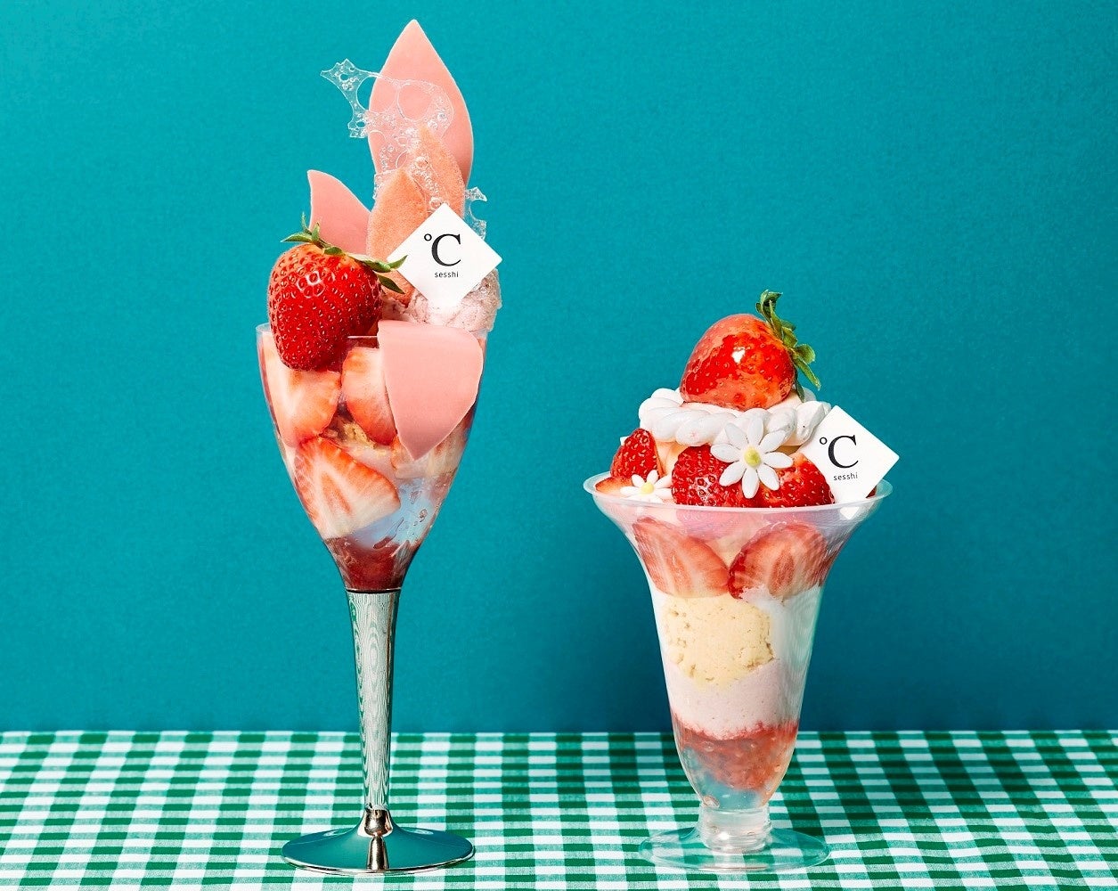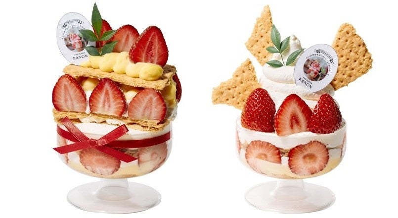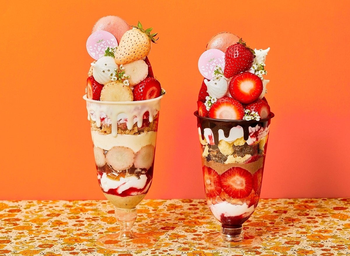左から)白いちご淡雪の食べ比べパフェ(1個)1,901円 / 赤いちごのチョコレートパフェ(1個)1,650円