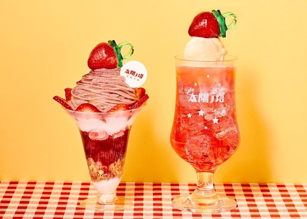 左から) いちごモンブランパフェ(1個)1,751円 / いちごリングのクリームソーダ(1杯)814円