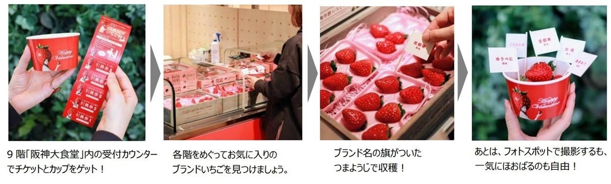 阪神名物のいちご狩りイベントを今年も開催。“古都華(ことか)”や”章姫(あきひめ)”など全8種類のブランドいちごからお好きな5種類を選んで食べ比べできる『いちご好きにはたまらない』イベントです。