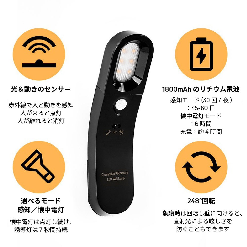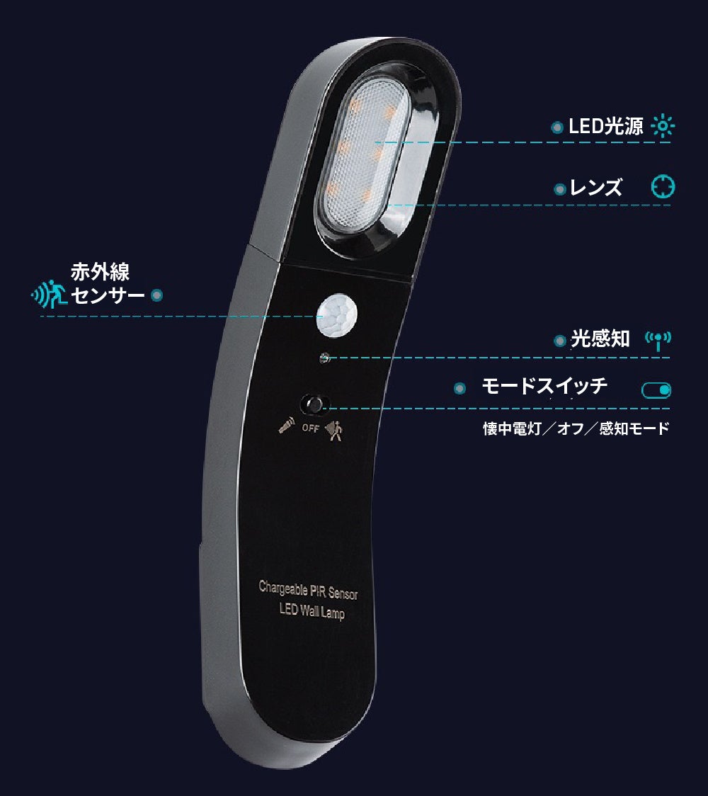 主に、センサー感知モードと懐中電灯モードの2つの使い方が可能なので、