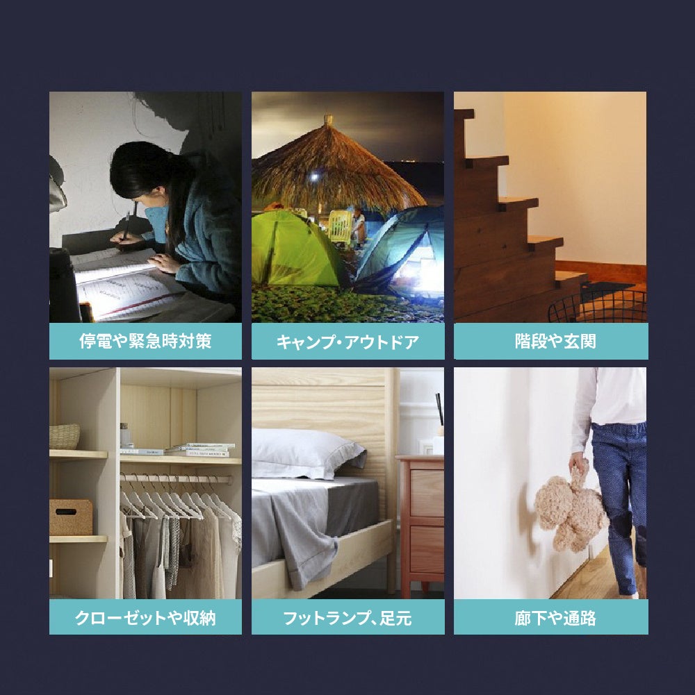 - 自宅、オフィス、ストレージ、廊下などで使いやすく、非常灯としても使える多用途