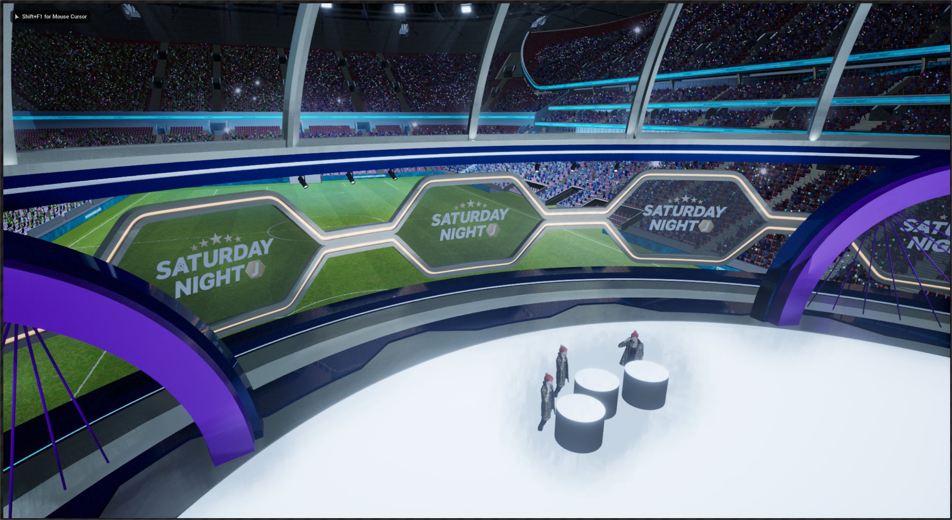 この番組では、Jリーグの未来を表現するというコンセプトで、バーチャルプロダクション技術を使って架空のスタジアム内にスタジオを設置し、生放送の臨場感を演出しながら、選手の情報やサッカーの戦術を立体的に表現することで、サッカーの魅力を存分に楽しんでもらいます!