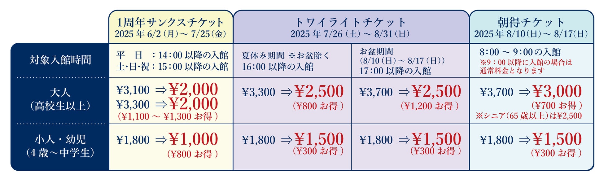 対象入館時間:平日14:00以降の入館、土・日・祝15:00以降の入館