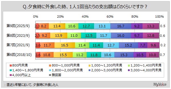 マイボイスコム株式会社(東京都千代田区、代表取締役社長:高井和久)は、9回目となる『外食』に関するインターネット調査を2025年9月1日~7日に実施しました。
