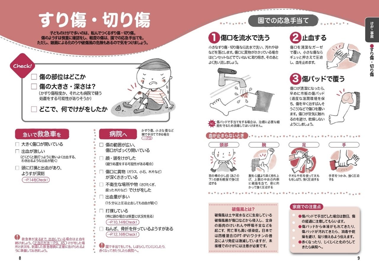 チェックポイント、応急手当の方法がイラストでわかりやすく掲載