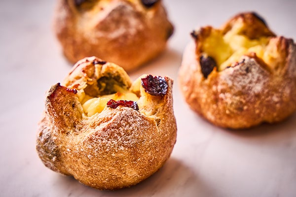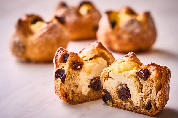 ゆっくり発酵させることで、小麦本来の豊かな香りと味わいを感じることができる自家製酵母を使ったカンパーニュ生地にレーズンを練り込み、はちみつを入れて酸味と甘みを引き立たせたクリームチーズを包んで焼き上げました。