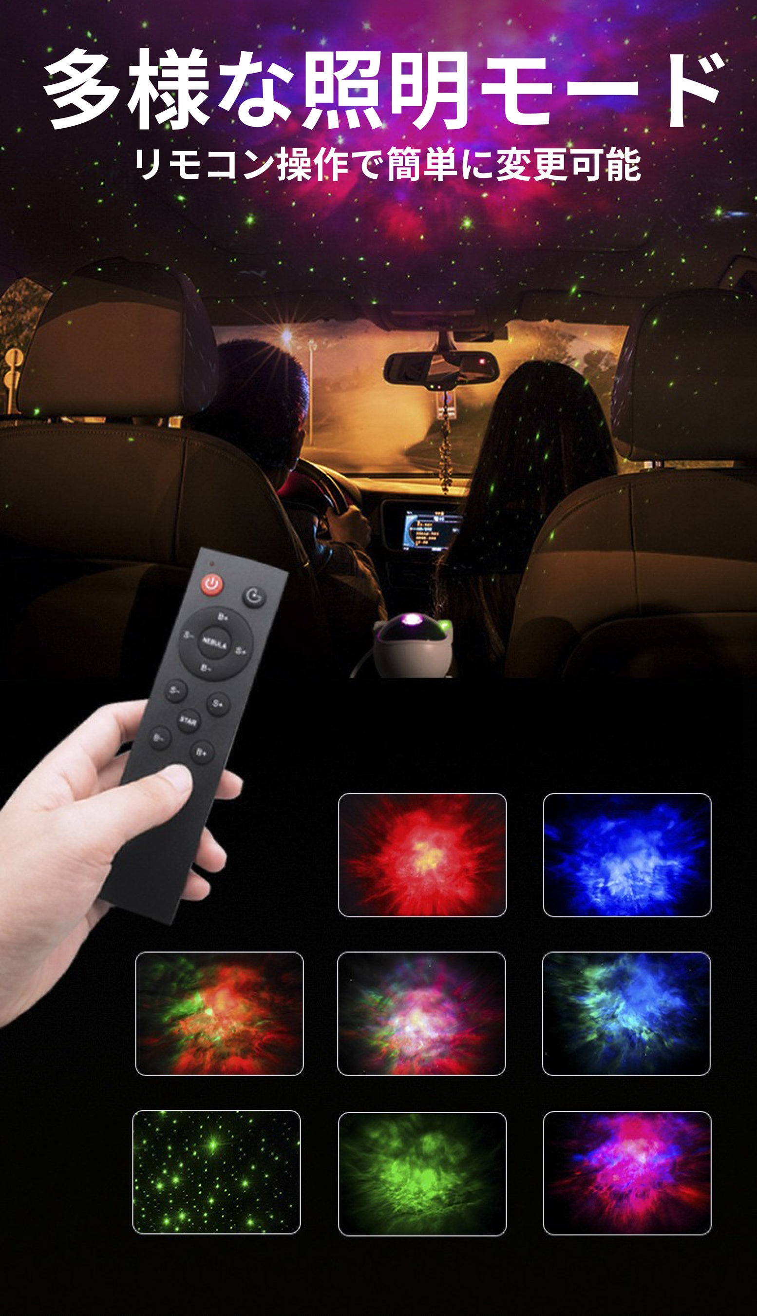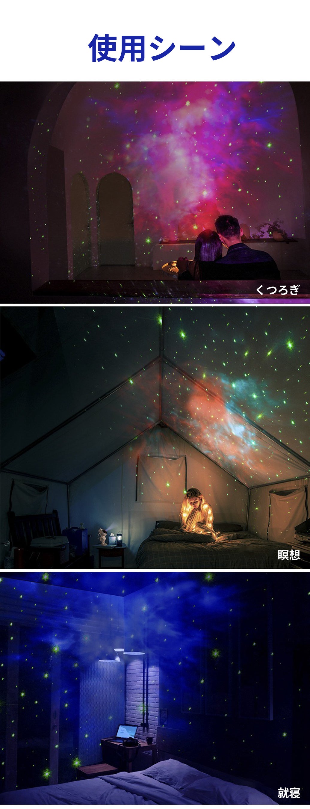 【8種類の選べる星空モード/角度・明るさ調整可能/広範囲投影/お休み前のリラックスタイムに】