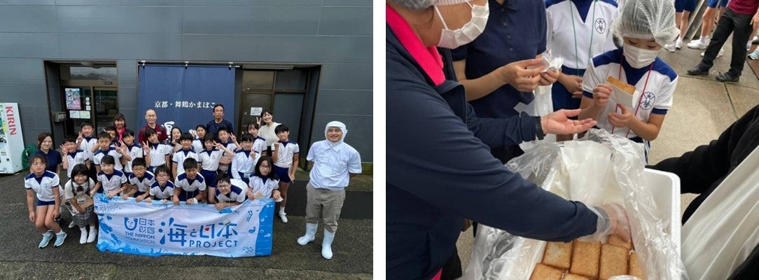 地元の魚を食べることで巡り巡って海の環境を守ることに繋がることを学び、最後にはできたての「舞鶴かまぼこ」てんぷら(ひらてん)を全員で試食しおいしさを体感しました。家に帰ってからもこのおいしさや、地元の魚を食べることで海の環境を守ることに繋がることを家族や友達に伝え、「自分たちにできることをしよう」と話していた様子でした。この後、「舞鶴かまぼこ」を製造販売する㈱嶋七とのオリジナル商品を販売予定で、オリジナルパッケージにはイベントを通して子どもたちが学び感じたことの一言メッセージを掲載予定です。