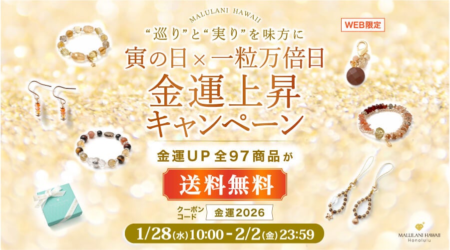 ハワイ発祥の天然石アクセサリーブランド「マルラニハワイ」は、暦の上で一年の始まりとされる 2月4日「立春」 にあわせ、公式オンラインショップにて【会員様限定】【毎日先着15名様限定】の「立春開運キャンペーン」 を開催いたします。