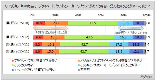 マイボイスコム株式会社(東京都千代田区、代表取締役社長:高井和久)は、8回目となる『プライベートブランド商品(PB商品)』に関するインターネット調査を2025年10月1日~7日に実施しました。