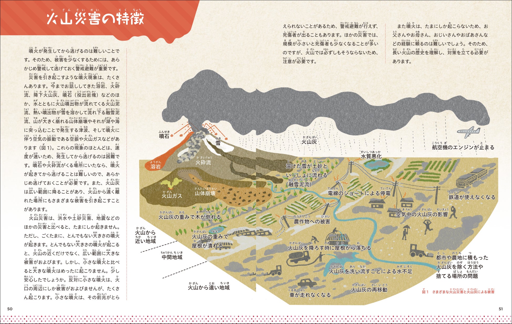 一方で、防災の視点も充実。火山災害の具体例や、火山監視の仕組み、噴火予測に関する情報も丁寧に解説し、備えに役立つ知識も網羅。
