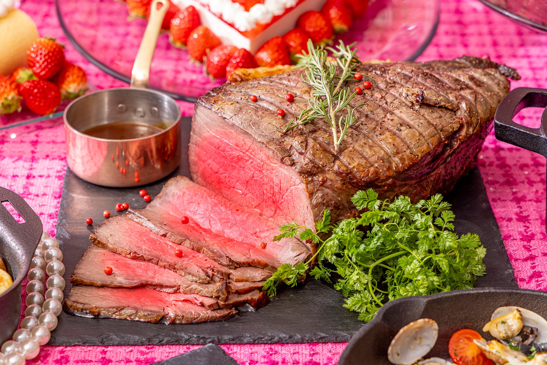また「テラス レストラン」自慢のメニューである「ローストビーフ」は、焼きたての香ばしい香りとジューシーな味わいが魅力です。シェフが目の前で切り分ける、ライブ感あふれるカッティングサービスのパフォーマンスとともに、ご堪能ください。