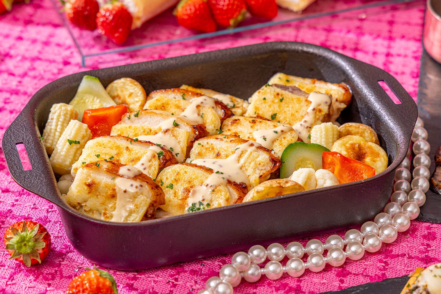 千葉県産牛の内ももの部位を使い、塩で軽く下味をつけて焼き上げています。お召し上がり時にお好みのソースや薬味を添えてお楽しみください。