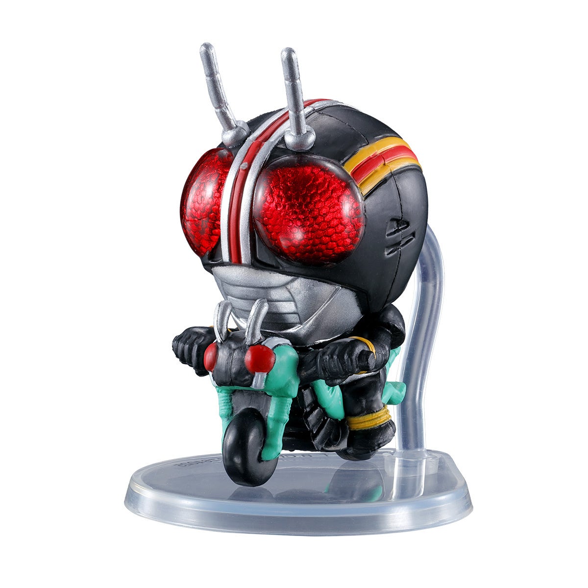 仮面ライダーの新たなコレクションフィギュア第2弾が登場!バイクに乗った仮面ライダーと専用台座がセットになっており、台座のボールジョイントにより「ウィリー」、「ドリフト」、「ジャンプ」などさまざまなライディングアクションが自由自在に楽しめる!さらに、バイクのフロントやマスクの複眼はクリア造形のハイクオリティ仕様!