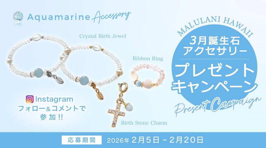 ハワイ発祥の天然石アクセサリーブランド「マルラニハワイ」にて、3月の誕生石「アクアマリン」を使用したアクセサリーをプレゼントする、冬の特別キャンペーンを開催いたします。