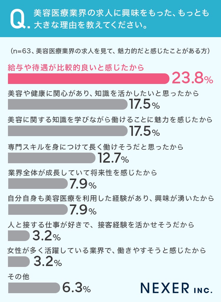 美容医療業界の求人に興味をもった、もっとも大きな理由を聞いてみました。