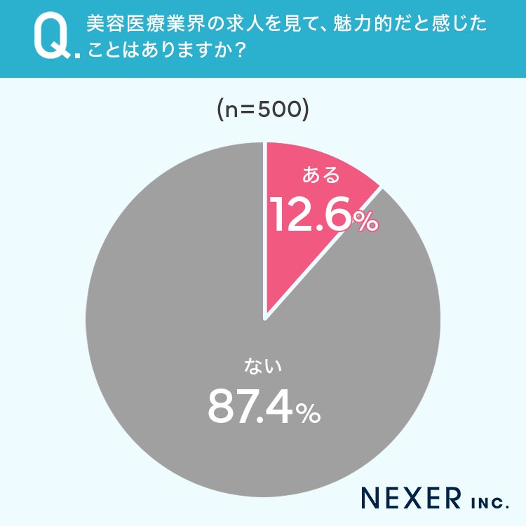 12.6%の方が美容医療業界の求人を見て、魅力的だと感じたことが「ある」と回答しています。