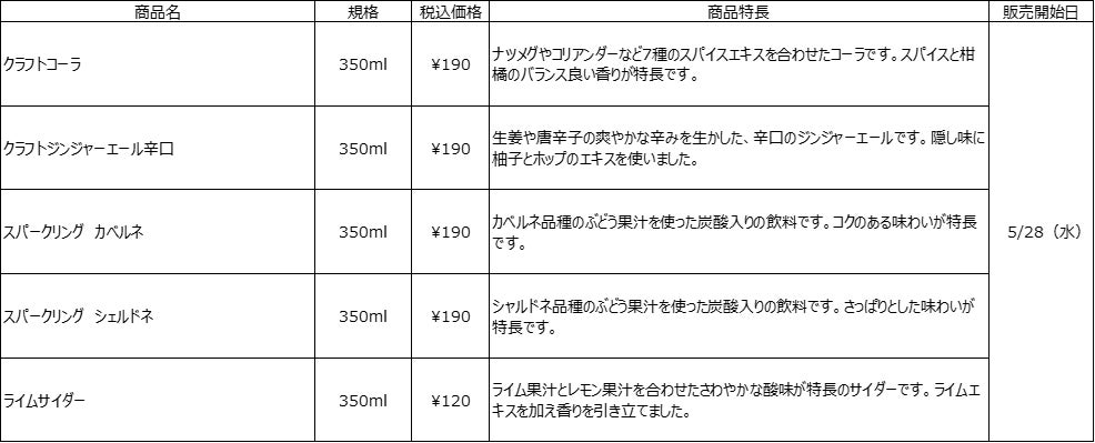 今回発売する炭酸飲料は、いずれも素材そのものの味わいを生かすため、果汁やエキス・スパイスで風味を引き出し、すっきりとした後味に仕上げています。リフレッシュしたい時や、これからの暑い季節にもぴったりな清涼感ある炭酸飲料です。