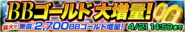 13周年を記念したお得なBBゴールド増量キャンペーンを実施しております。BBゴールドの購入金額に応じて、最大で2,700BBゴールドの増量で大変お得となっております。