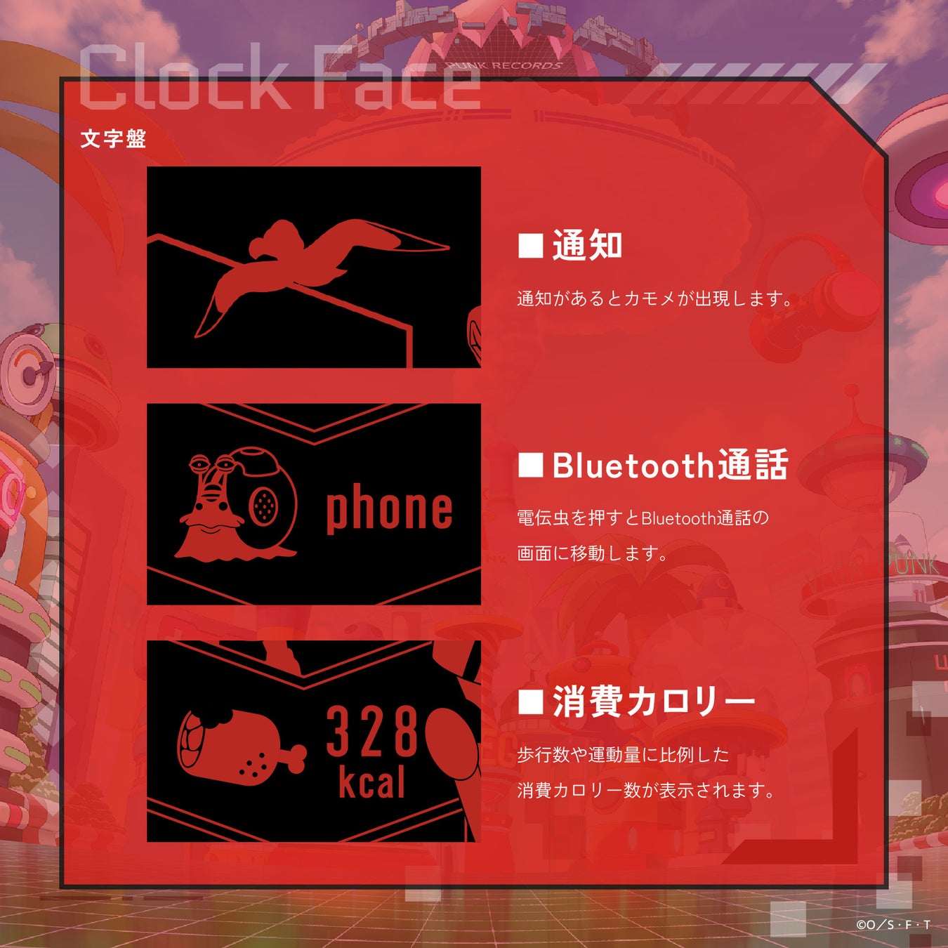 通知が届くとカモメが登場したり、電伝虫をタップするとBluetooth通話ができるなど、作品の世界観を楽しみながら日常を彩るユニークな仕様です。