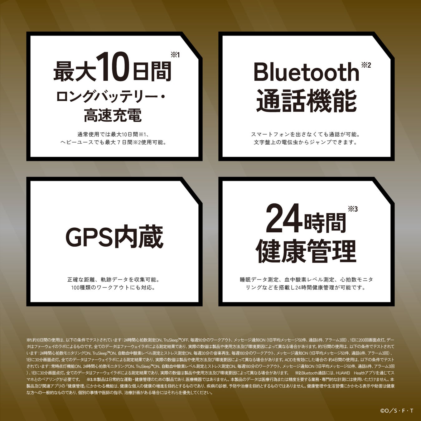 睡眠データ測定、血中酸素レベル測定、心拍数モニタリングなどを搭載し24時間健康管理が可能です。