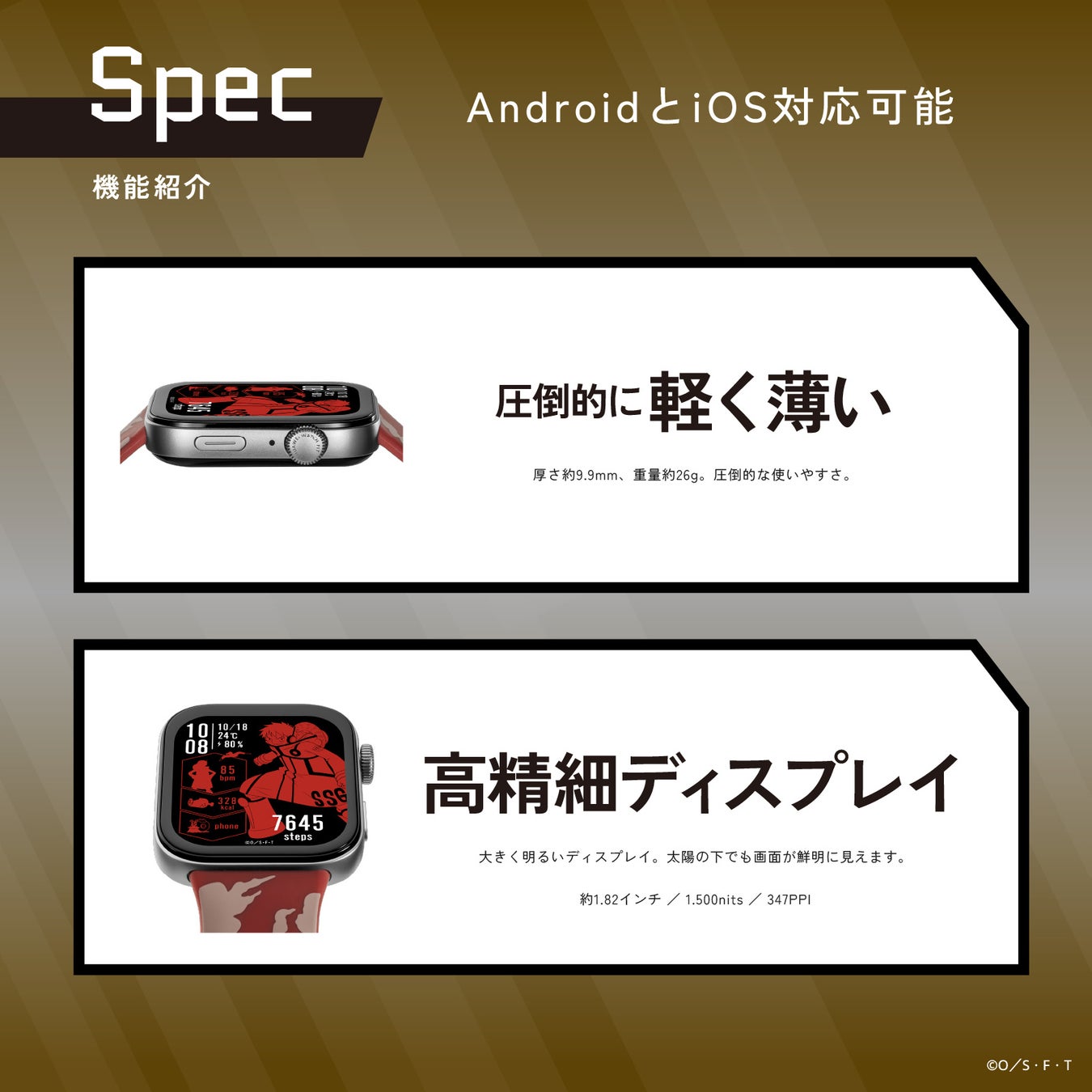 キャラクターをイメージしたベルトやオリジナル文字盤を備えた、 スタイリッシュなスマートウォッチです。