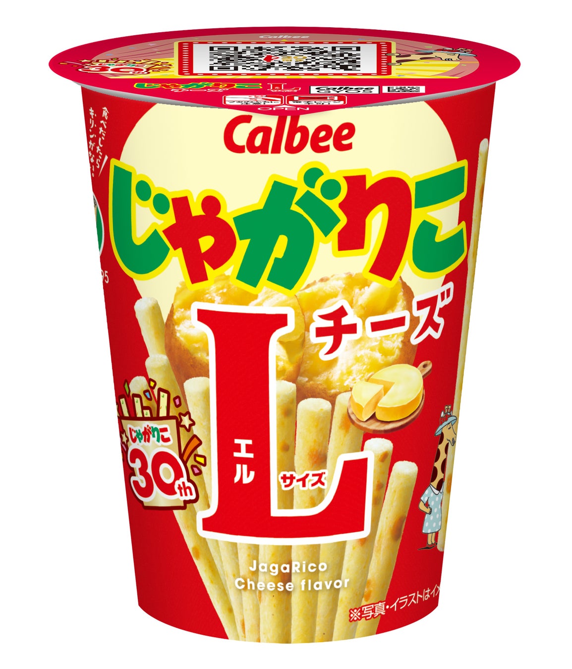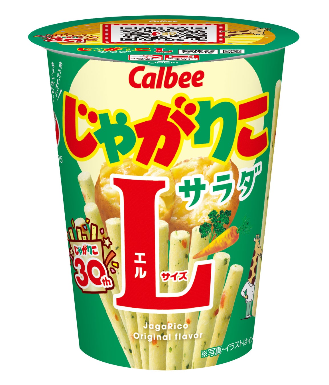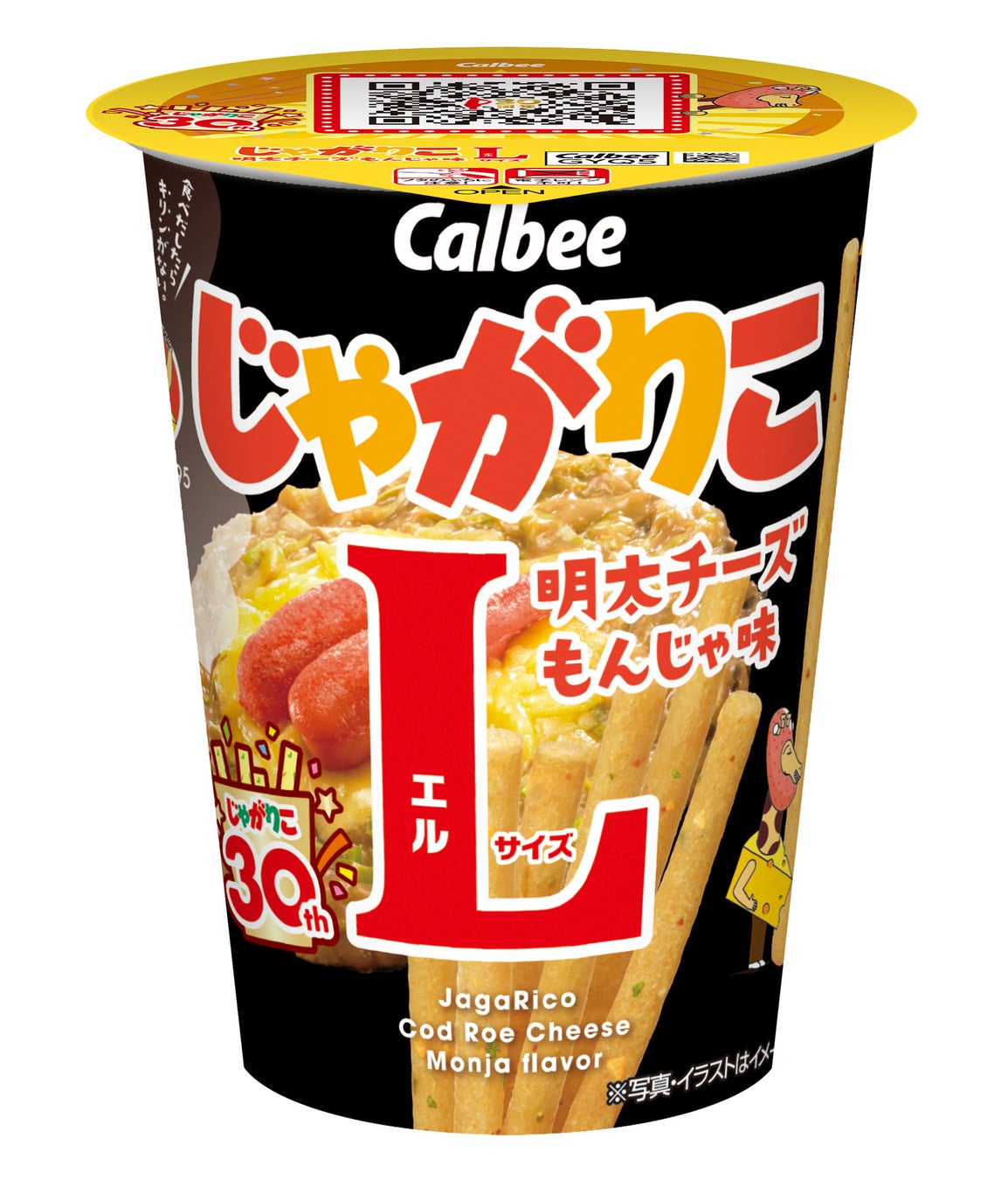 また、発売30周年を記念して、「じゃがりこ」の定番商品である「サラダ」「チーズ」「じゃがバター」「たらこバター」「九州しょうゆ味」「明太チーズもんじゃ味Lサイズ」の6フレーバーは30周年ロゴが入った特別パッケージに2025年10月中旬以降、順次店頭で切り替わります。