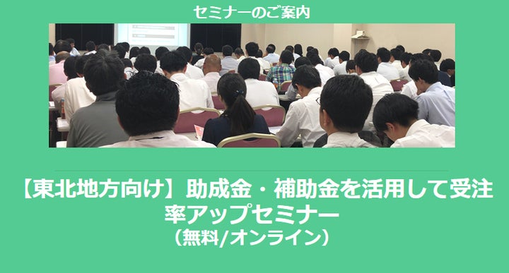【11/21より】「東北地方の主な補助金紹介セミナー」の配信を開始しました(無料/オンライン)【助成金なう】