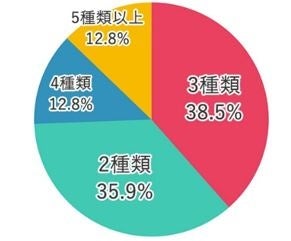 種類 3種類 38.5%、2種類 35.9%、5種類以上 12.8%、4種類 12.8%