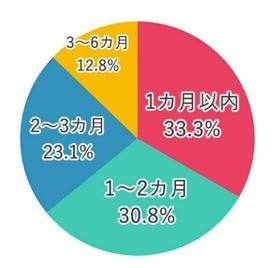 頻度 1カ月以内 33.3%、1カ月~2カ月 30.8%、2カ月~3カ月 23.1%、3カ月~6カ月 12.8%