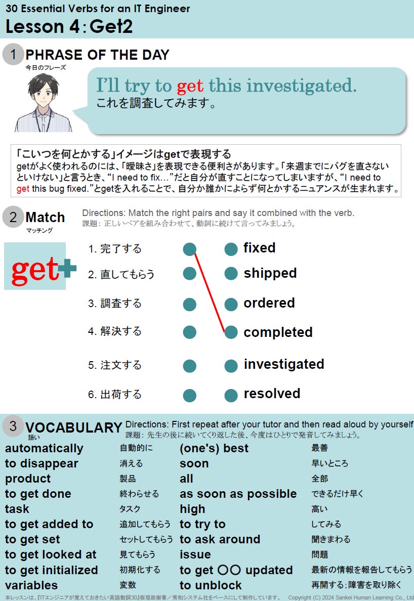 産経ヒューマンラーニング株式会社(本社:東京都新宿区、代表取締役:中谷友紀、以下「当社」)は、2024年10月31日(木)に、英会話の新講座としてITエンジニア向けの『IT神動詞』を開講します。