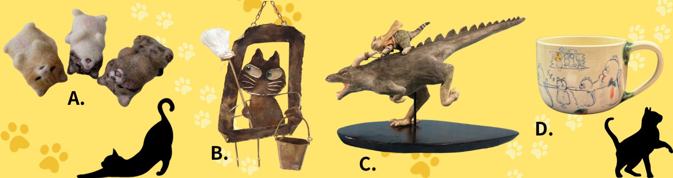 C)猫らしさと人間臭さの間でバランスを取りながら、思わずニヤリとしてしまう作品たち。