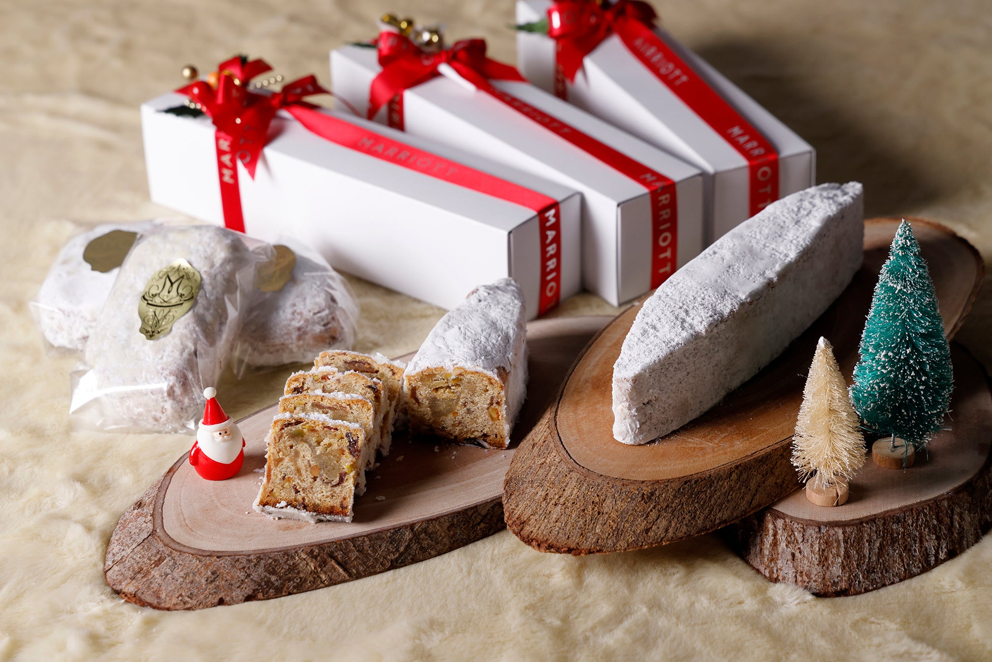 スタイリッシュなフォルムに焼き上げたシュトーレンは、ラム酒に漬け込んだクランベリーやレーズン、いちじくなどのドライフルーツの他に、ピスタチオ、ヘーゼルナッツ、マロングラッセを贅沢に使用しました。手軽に楽しめるスモールサイズもご用意しており、ご自宅用にはもちろんプレゼントにもおすすめの逸品です。