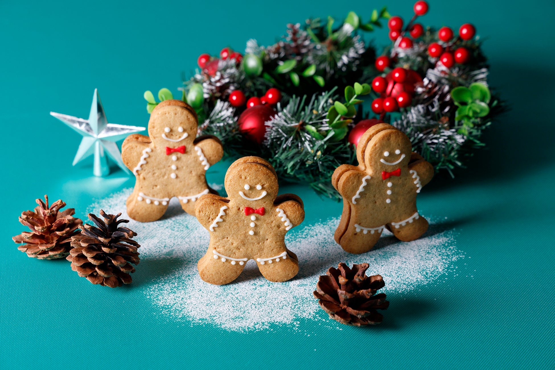 海外のクリスマスには欠かせないジンジャーブレッドマンクッキーにダークチョコレートのガナッシュをサンドしました。家族の無病息災を願い、体にやさしいジンジャーを素材に使ったという起源をもつジンジャーブレッドマンクッキーは、食べるのがもったいないくらいキュートなフォルムとスパイスの香りが特徴です。