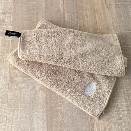 マイクロファイバー素材で吸水性抜群! フクロウの刺しゅう入り。タオル掛け用のループもついています。