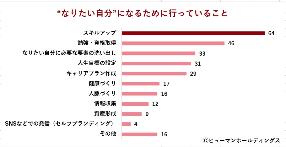 Q4. 「“なりたい自分”になるために行っていること」 は、「スキルアップ」が最も多く、「勉強・資格取得」が続く