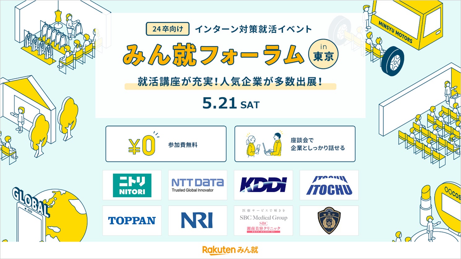 楽天グループ株式会社が運営するクチコミ就職情報サイト「楽天みん就」は、就活イベント「みん就フォーラム」を5月21日(土)に新宿NSビルにて開催することを決定しました。