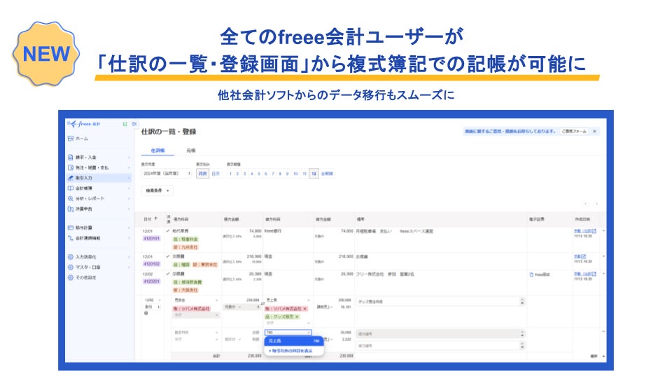 全てのfreee会計ユーザーが「仕訳の一覧・登録画面」から複式簿記での記帳が可能に 他社の会計ソフトからのデータ移行もスムーズに