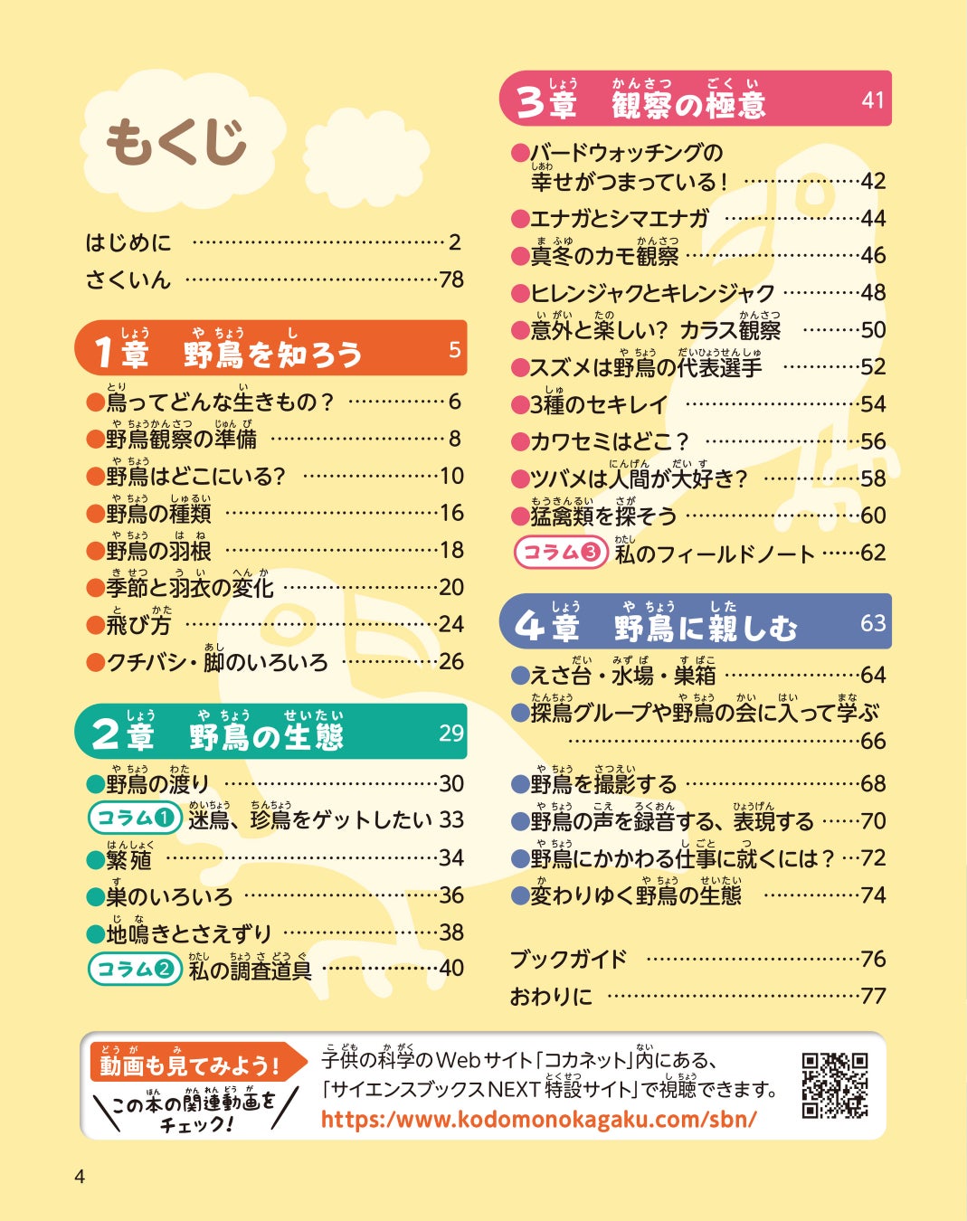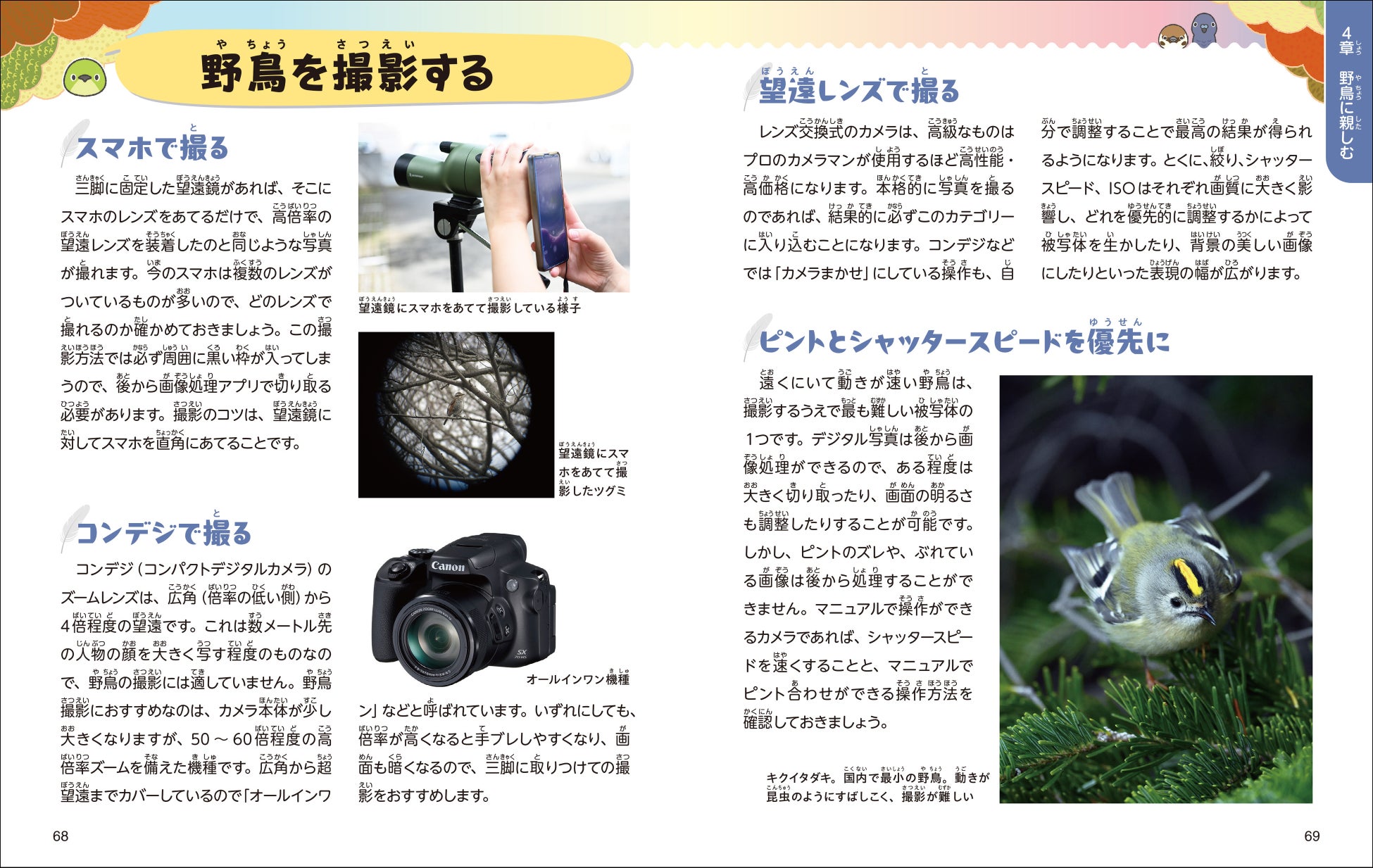 スマホで写真や鳴き声を録音したり、スケッチするなど記録方法のアイデアも紹介します。野鳥を庭に呼ぶ方法や、観察会での取り組み、野鳥に関わる仕事などお楽しみ情報も!