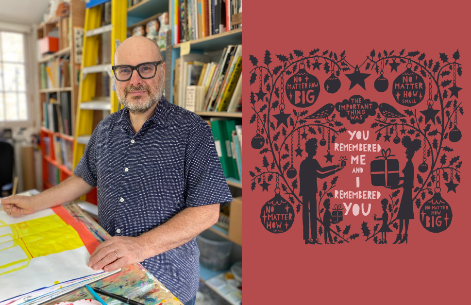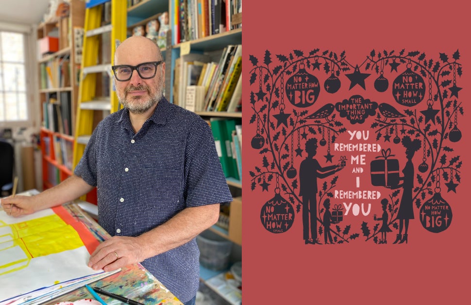 ずっと大丸・松坂屋のホリデイ テーマビジュアルを切り絵で彩ってくださっているロブ・ライアンさん。