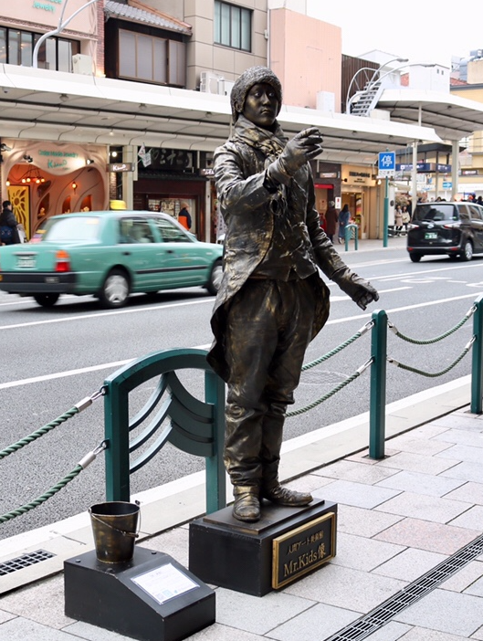 - 会場に、生きてる銅像が出現! スタチューパフォーマーがサンタさんを応援!