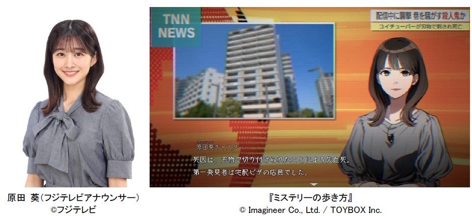 フジテレビは、イマジニア株式会社(東京都新宿区、代表取締役社長 兼 CEO澄岡和憲)が12月12日(木)より発売開始した、Nintendo Switch™ソフト『ミステリーの歩き方』のメディアパートナーとして参画すると共に、同ゲーム内にキャスター役として鈴木唯(フジテレビアナウンサー)、原田葵(フジテレビアナウンサー)が出演することを発表します。