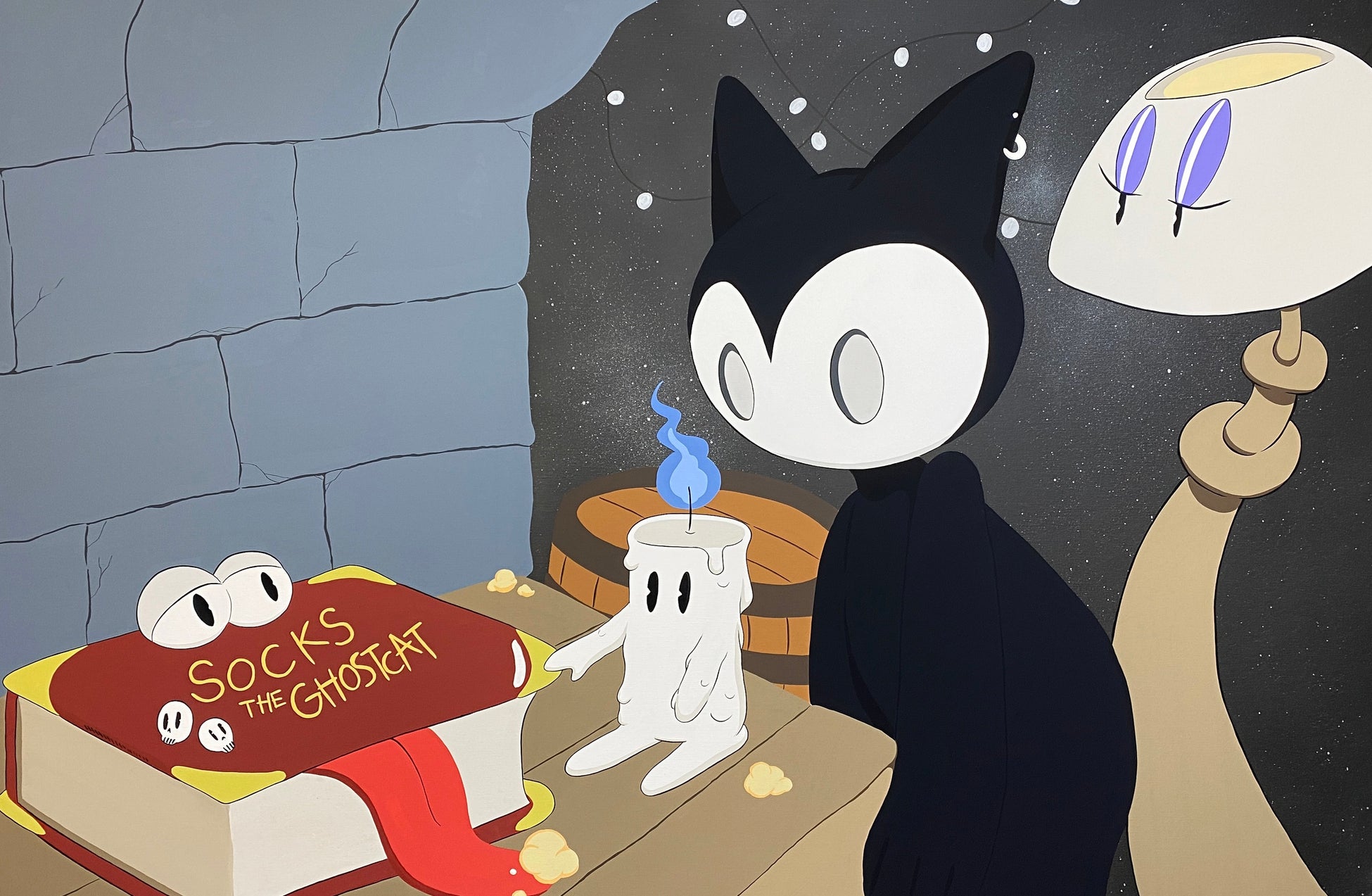 私は30年代のオールド・アニメーション、モノクロの世界観が大好きです。日本の「Kawaii」とはまた少し異なった可愛さ、良い意味でチープな雰囲気、手描きっぽさ、アナログ感を大切にした物語性のある作品やキャラクターがインスピレーションの源となっています。私の作品の代表キャラクターである「Socks the Ghost cat(通称:ソックス)」は2020年代に生まれたのですが“新しいけど懐かしい”を感じさせてくれる特別な存在であり、私が幼いころカートゥーン・アニメを観て感じた“新鮮さ”と大人になった今の私が観て感じる“懐かしさ”そのどちらもが融合したような世界観を、ソックスを介して表しています。