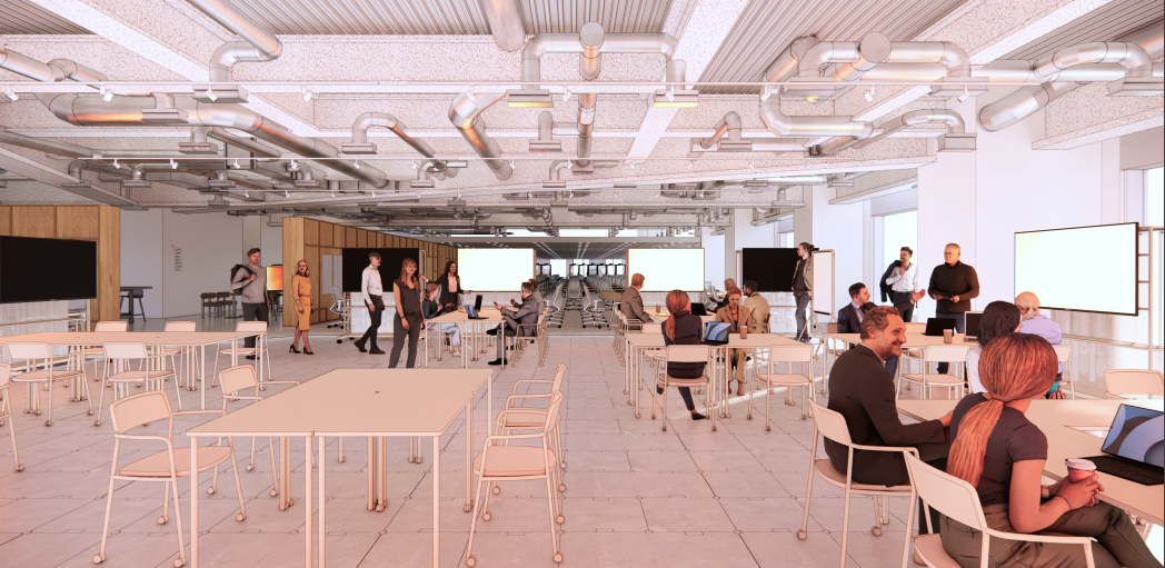 さらに、少人数での打ち合わせから、チーム単位のディスカッション、ワークショップまで、用途に応じて活用できる空間に加え、部門や拠点を超えた交流やイベントに活用できるオープンスペースも設けています。対面ならではのコミュニケーションの価値を高めることで、意思決定のスピードやチームの一体感の向上にもつなげていきます。