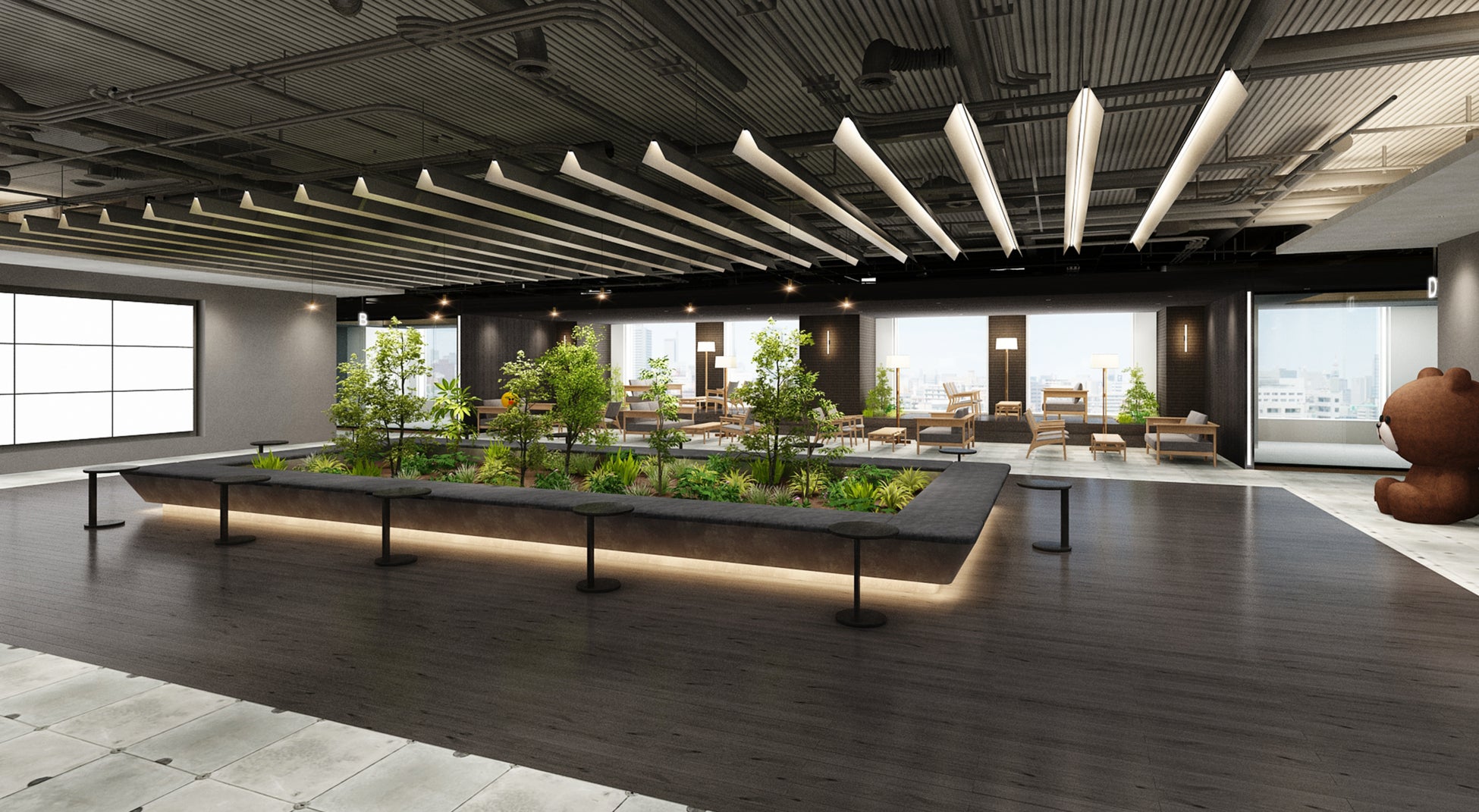 また、来客エリアには、「ブラウン」や「けんさく」など、LINEヤフーのキャラクターを配置し、来訪者との会話のきっかけや親しみやすさを生み出す工夫も取り入れています。働く場としての快適性に加え、企業として大切にしている考え方やカルチャーが伝わるオフィスを目指しました。