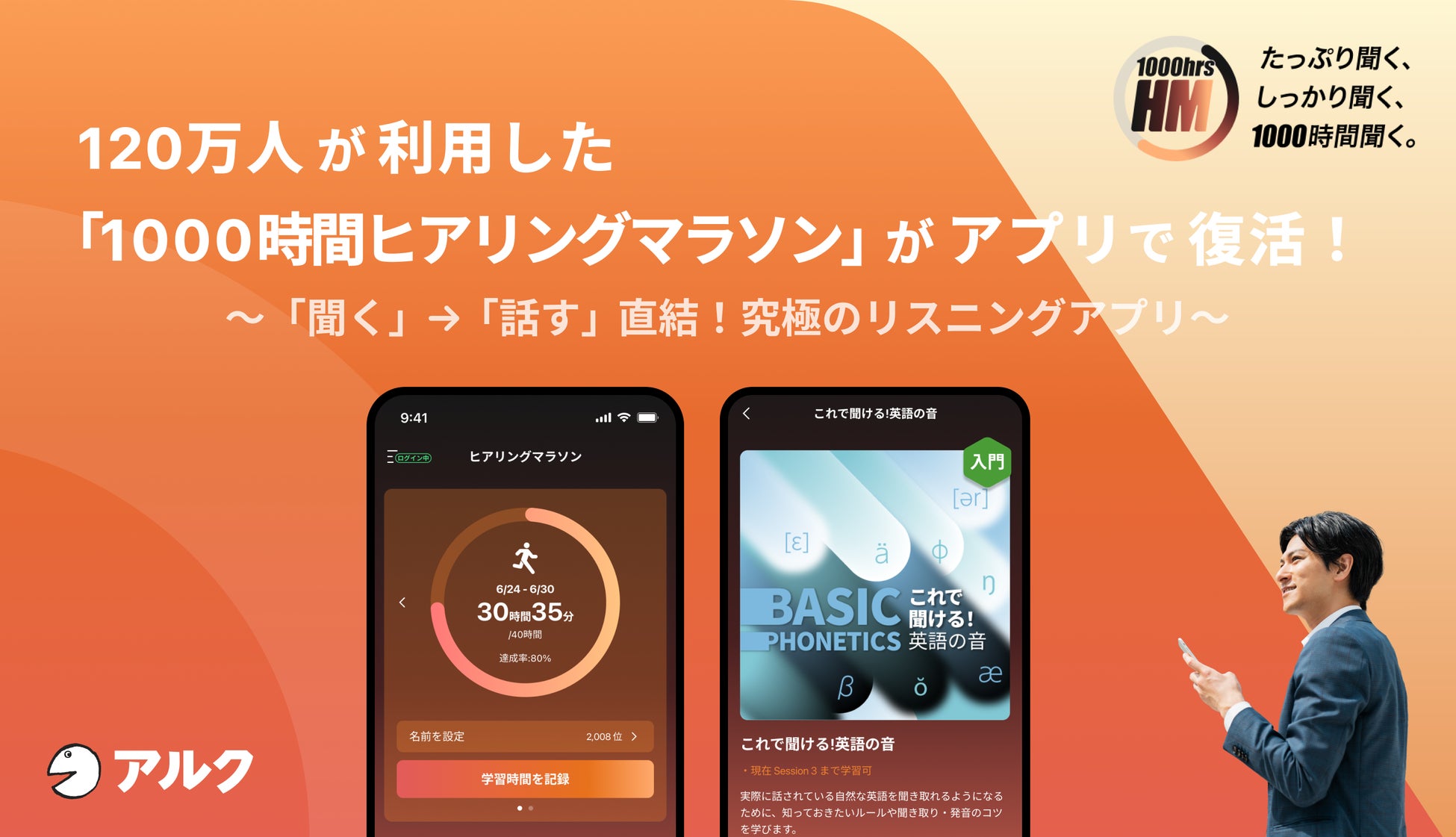 株式会社アルク(東京都品川区 代表取締役社長:天野 智之)は、アプリ1つでさまざまなジャンルの英語を、プロこだわりのカリキュラムで学習できる「1000時間ヒアリングマラソン」を一般向けにもリリースいたしました。